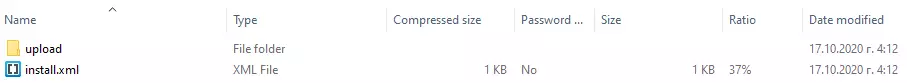 - Влезте в под-директорията, където се намира папката upload и файлът install.xml — после ще архивирате отново инсталатора и това ще бъде отправната ви точка.