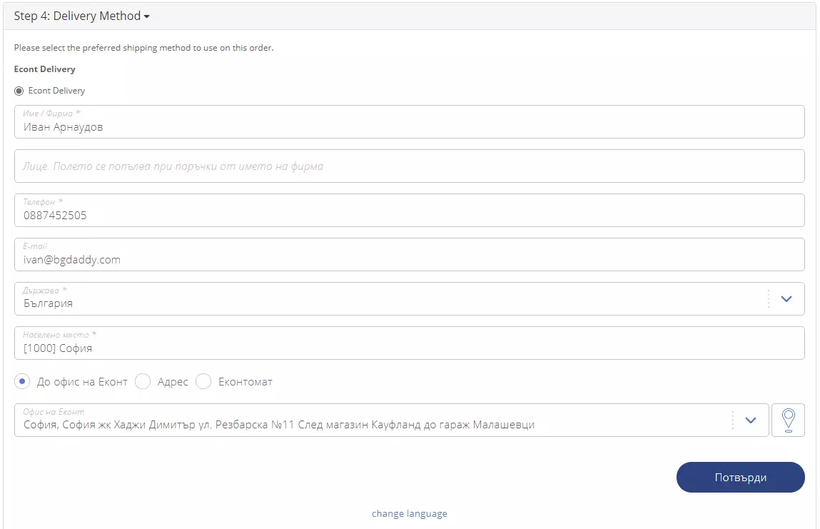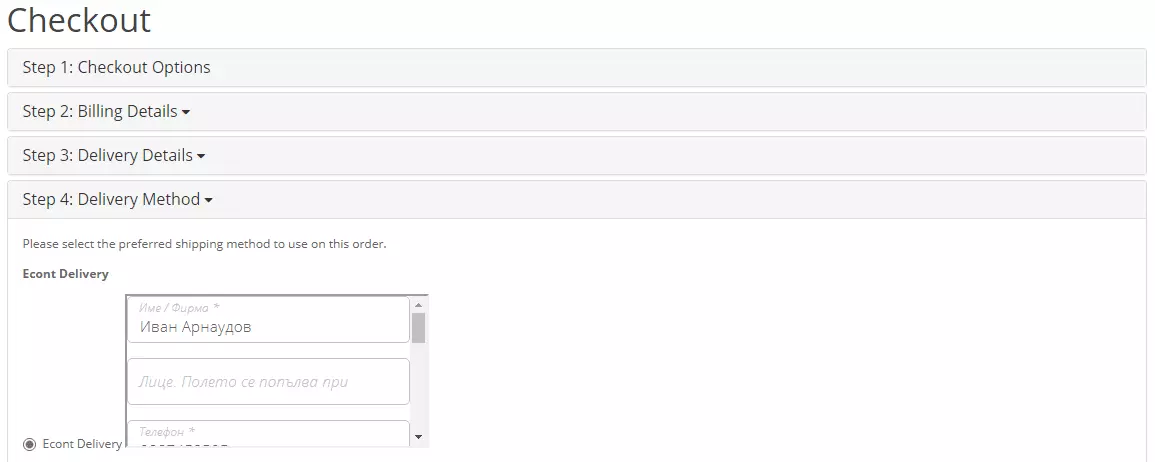 Ето как може да изглежда чекаут страницата на OpenCart 3 за Еконт