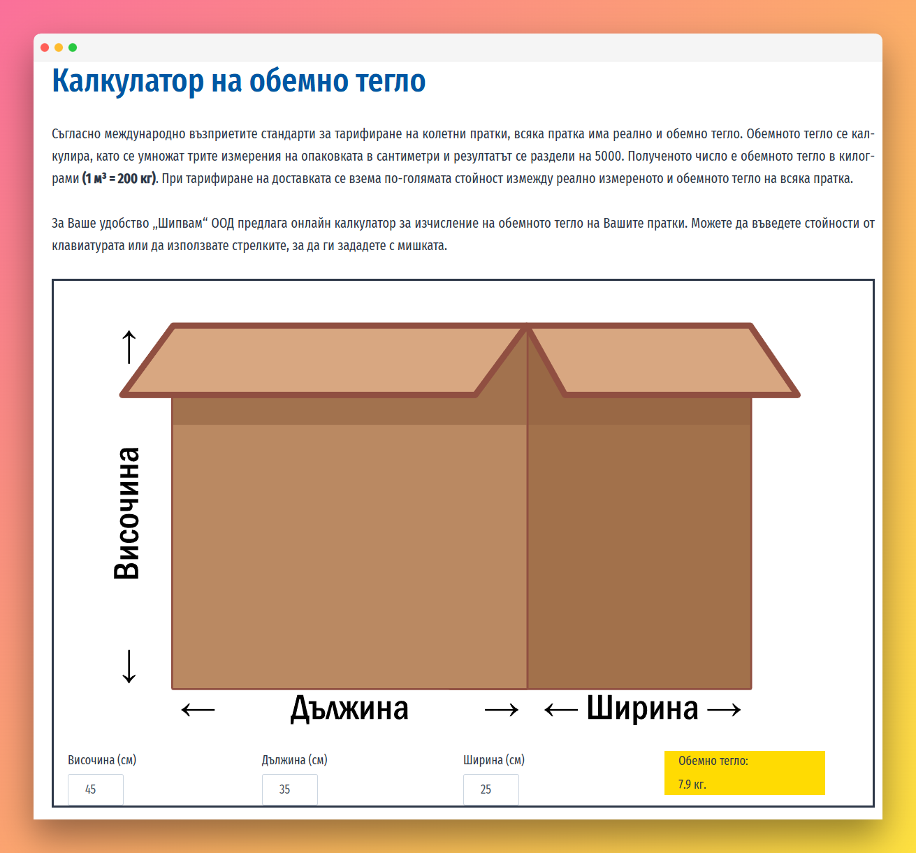 Представителният сайт на Шипвам предоставя описания на предлаганите услуги, предлага удобен калкулатор на обемно тегло и дава възможност за проследяване на товарителници посредством API интеграция с информационната система на компанията.